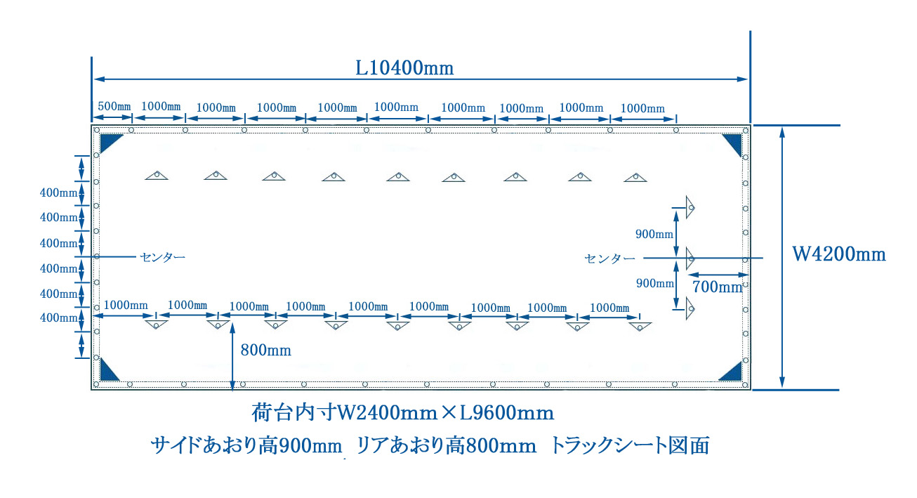 10t運送業トラックシート 荷台W2400mm×L9600mm サイドあおり高700mm リアあおり高500mm用